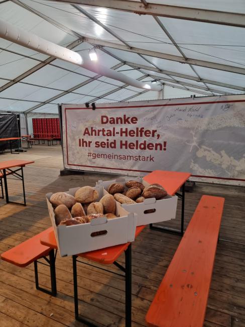 Als Sie uns darauf angesprochen hat, waren wir sofort Bereit mitzuhelfen und haben ein großes Backwarenpaket zusammengestellt, welches Frau Reinbold mit ins Ahrtal genommen hat.