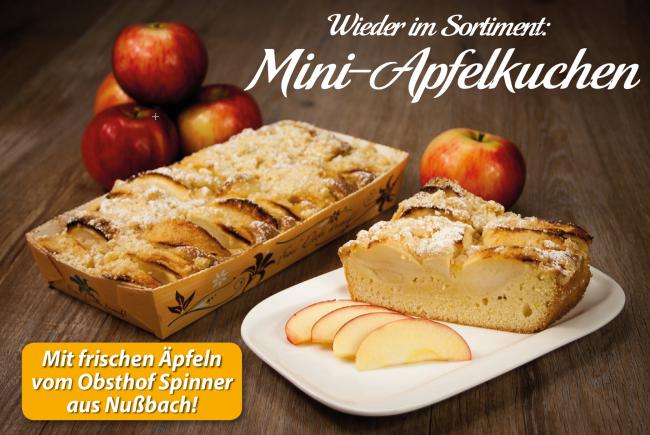 Jetzt, wo wieder die frischen Äpfel an den Bäumen hängen haben wir wieder unseren Mini-Apfelkuchen und unseren Elsässer Apfelkuchen im Sortiment.
