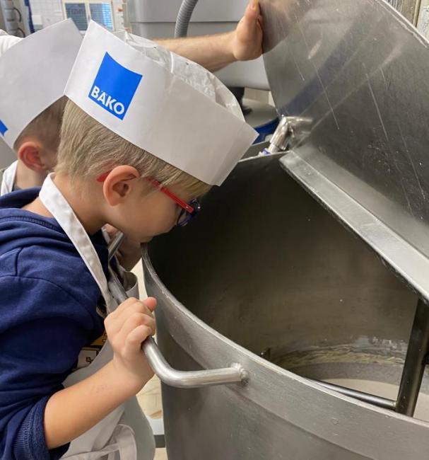 So hatten wir 15 kleine Bäcker und Bäckerinnen in der Backstube, die selbst Brot backen durften, die Backstube besichtigten und sahen, wie der Vorteig schläft und das Brot im Ofen backt.