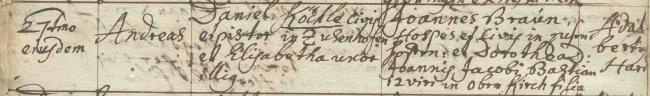 Erstmalige Erwähnung der Bäckerei Daniel Köchle in den Kirchenbüchern von Nußbach. Er war der Sohn des Müllers der Mittleren Mühle in Müllen (zuletzt Gerdesmühle).