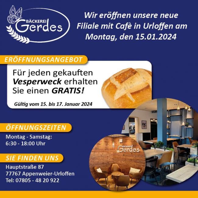 Im Oktober 1987 hat die Bäckerei Gerdes ihren 225. Geburtstag groß gefeiert. Einige Jahre später haben die Recherchen zur Zusenofener Ortschronik ein überraschendes Ergebnis geliefert: Unsere Familienbäckerei ist deutlich älter. Sie besteht seit dem Jahr 1725. Damals ließ sich ein gewisser Daniel Köchle, Sohn eines Müllers aus Müllen, in Zusenhofen nieder und eröffnete dort eine Bäckerei.