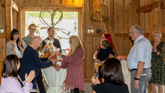 In einer humorvollen Begrüßungsrede spannte Seniorchef Wilhelm Schuler den Bogen von den Anfängen im Jahr 1725 – als Gründer Daniel Köchle noch bei Kerzenlicht den Holzofen anheizte – bis in die Gegenwart, in der LED-Licht, Teigmaschinen und E-Transporter den Arbeitsalltag bestimmen. Doch im Mittelpunkt stand und steht immer das traditionelle Bäckerhandwerk.
