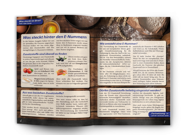 Wir setzen diesmal unsere Serie über Inhaltsstoffen in Backwaren fort und widmen uns speziell dem Thema "Zusatzstoffe & E-Nummern". Außerdem stellen wir ein neues, veganes Brot vor und zeigen Neuheiten auf unseren Webseiten.
