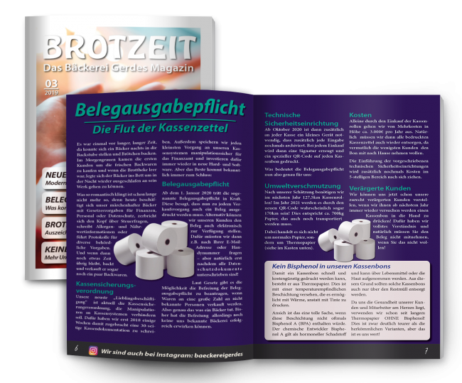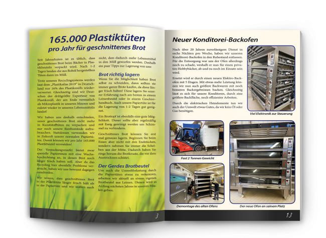 Diesmal geht es viel um unsere Umwelt. Wir wollen unsern Teil zum Umweltschutz beitragen und benutzen deshalb keine Kunststoffbeutel mehr für geschnittenes Brot. Außerdem geht es um die Kassenbonpflicht und was dies für die Umwelt bedeutet. Für unsere kleinen Kunden haben wir diesmal eine Weihnachtsgeschichte.
