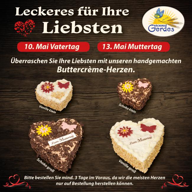 - Buttercrème-Herzen in Schoko oder Vanille