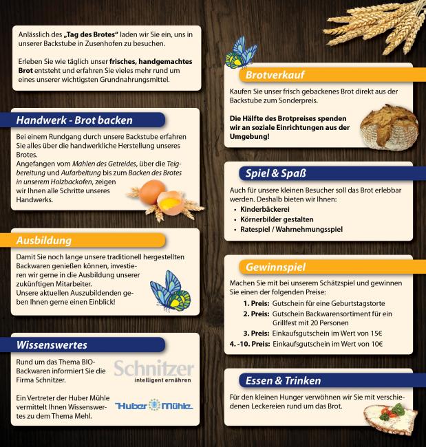 Anlässlich des „Tag des Brotes“ laden wir Sie ein, uns in unserer Backstube in Zusenhofen zu besuchen.